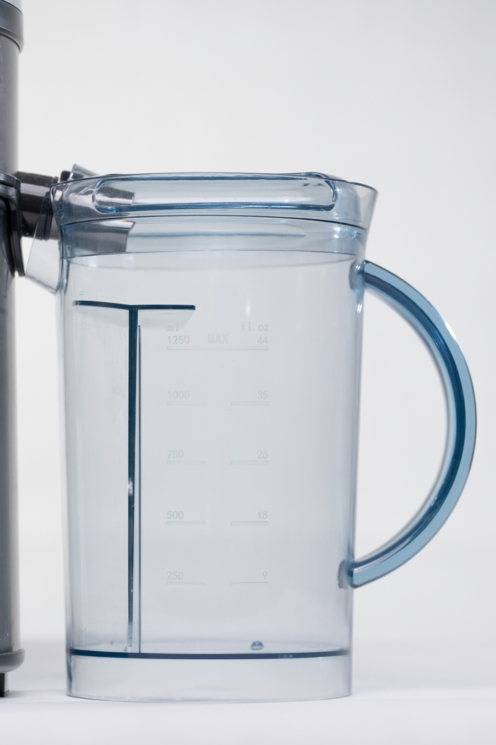 - مخزن تفاله 2 لیتر: مخزن تفاله این آبمیوهگیری ظرفیت 2 لیتر دارد که امکان استفاده طولانیمدت و بدون وقفه از دستگاه را فراهم میکند. هنگامی که مخزن پر شود، به راحتی میتوانید آن را جدا کرده، تخلیه کنید و دوباره روی دستگاه نصب کنید. این ویژگی باعث میشود که شما بتوانید بدون نگرانی از پر شدن مخزن، مدت طولانیتری از دستگاه استفاده کنید.